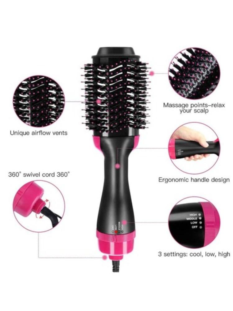 استمتعي بشعر رائع ومصفف كصالونات التجميل مع سشوار شعر 4 في 1 يعمل على تجفيف الشعر وتصفيفه بأقل وقت وأقل تلف بفضل التكنولوجيا الحديثة.