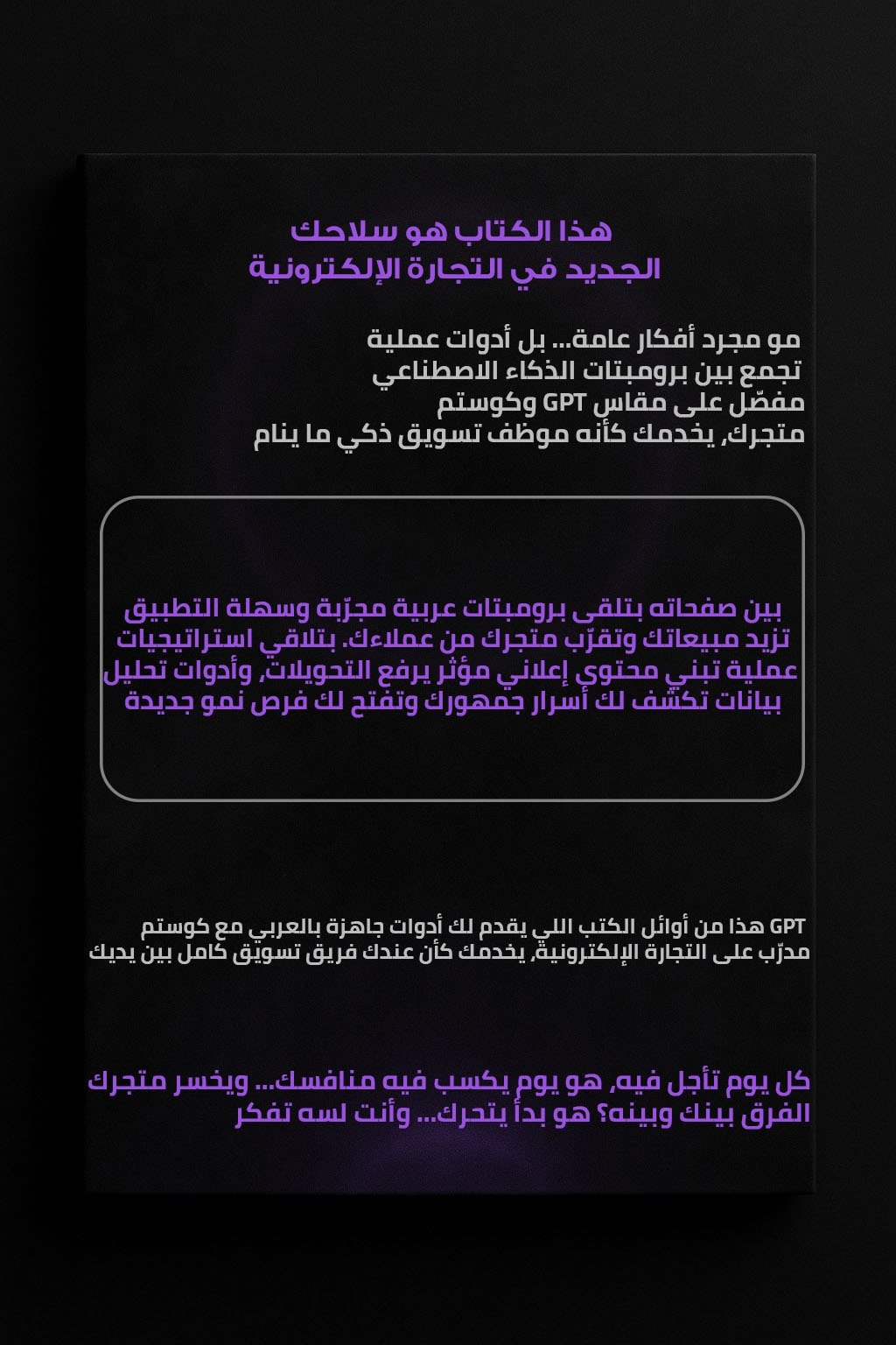 ممكن يكون منافسك الآن يقرأ هذا الكتاب ويستخدم الـ GPT اللي فيه عشان يرفع مبيعاته يوم ورا يوم.
